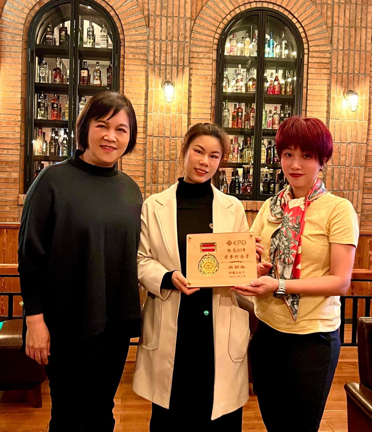 科蓬达荣誉股东潘玮女士、总经理叶珺女士为肖丽英颁奖: