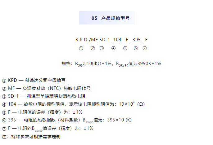 KPD产品系列04—MF5D单端玻封NTC热敏电阻