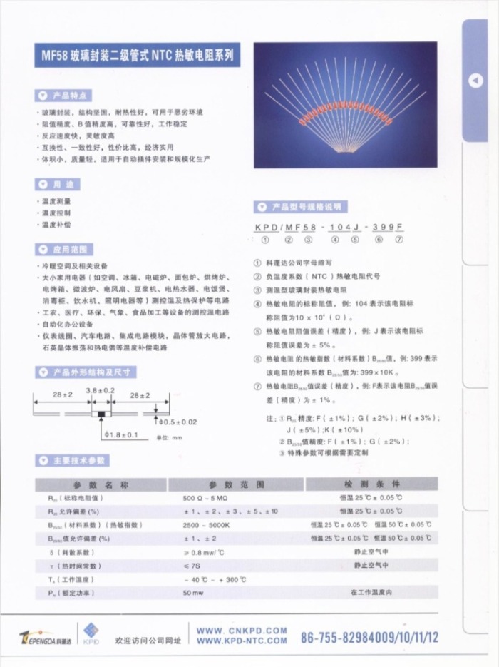 - 玻璃封装,结构坚固,耐热性好,可用于恶劣环境