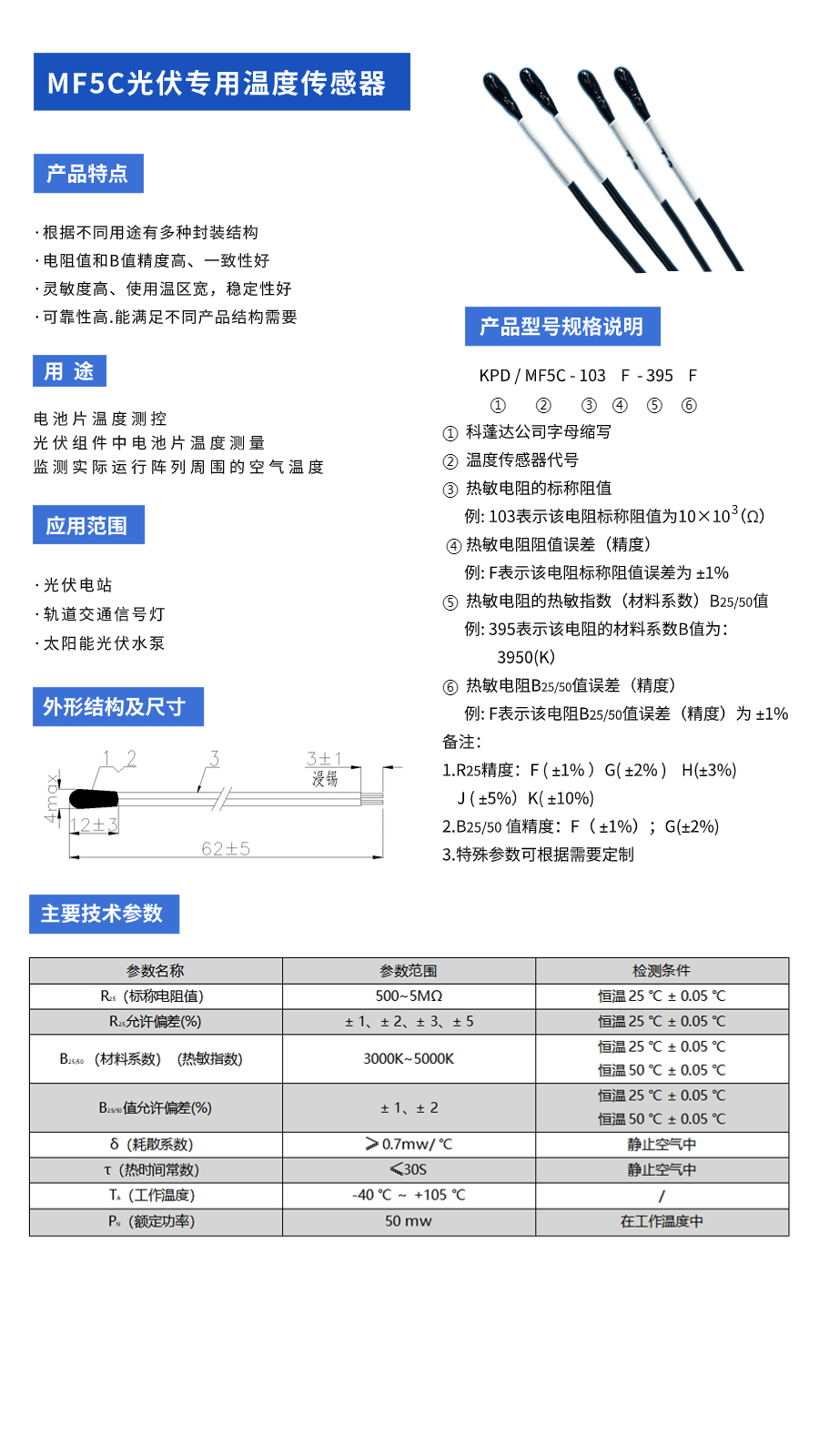 电阻值和B值精度高、一致性好